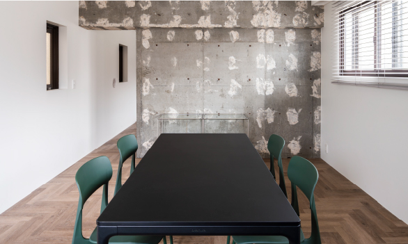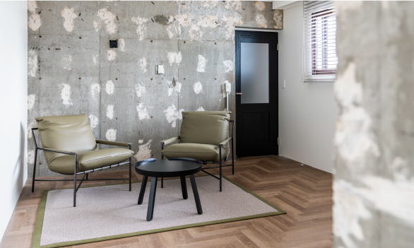 白壁とコンクリート壁がつくる、ほどよい緊張感。