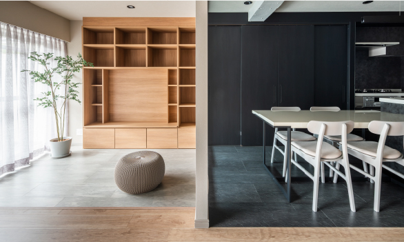 キッチンや家具、生活動線まで丁寧に整えられた空間は、