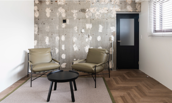白壁とコンクリート壁がつくる、ほどよい緊張感。
